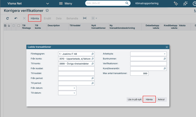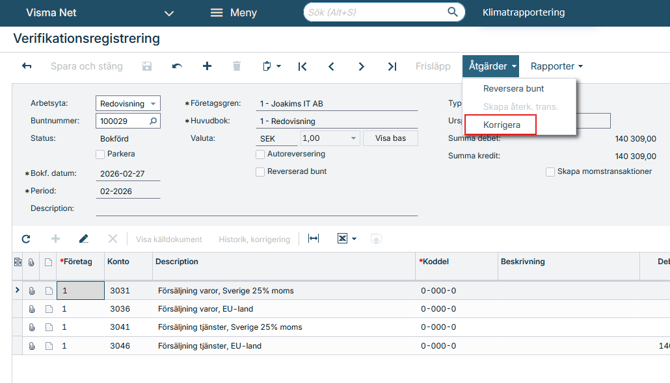 Korrigera verifikation i Visma Net